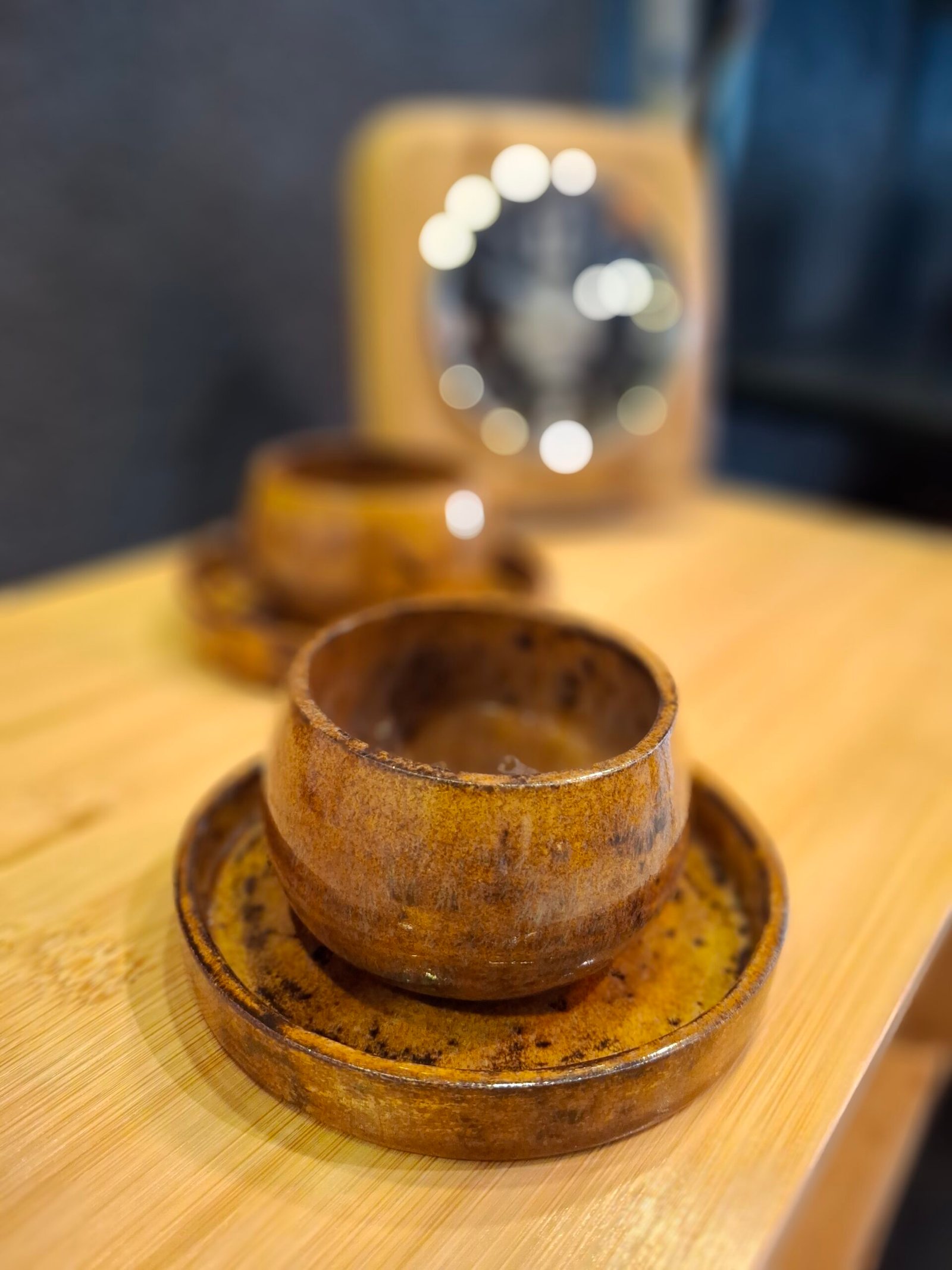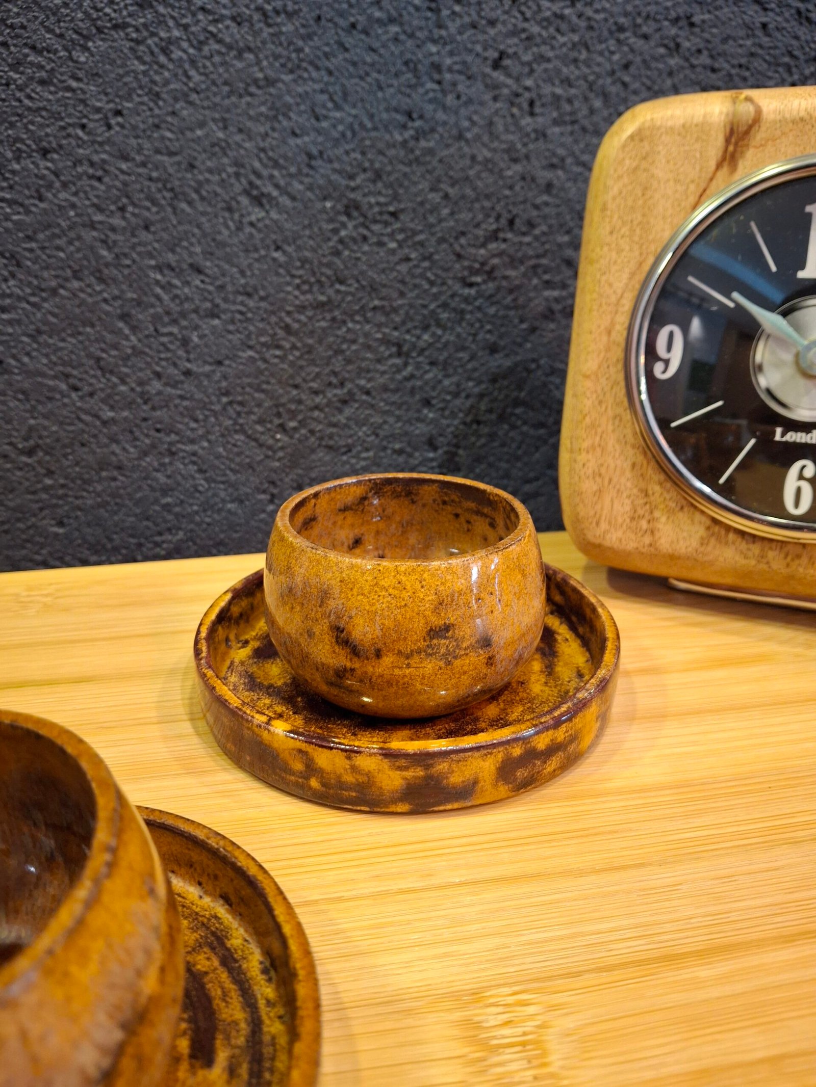 Toprak rengi 2’li Seramik Kulpsuz Türk Kahvesi Fincanı Elyapmı 150ml.