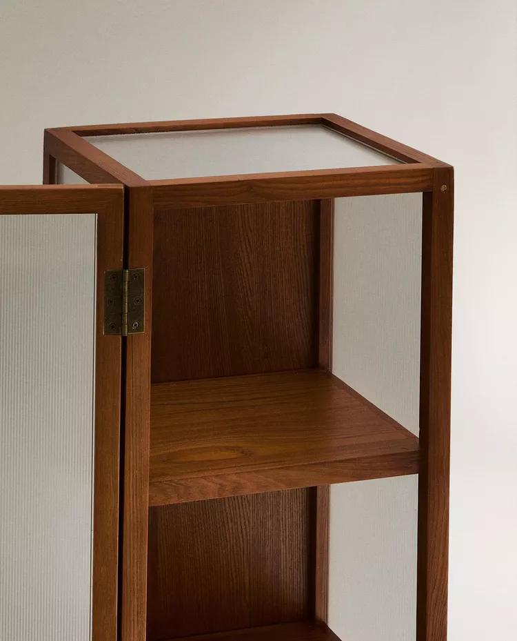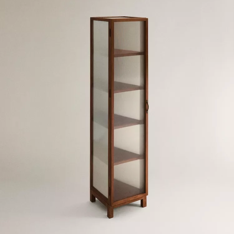 Mıknatıs Cam Kapaklı Masif Ağaç 5 Gözlü Dolap