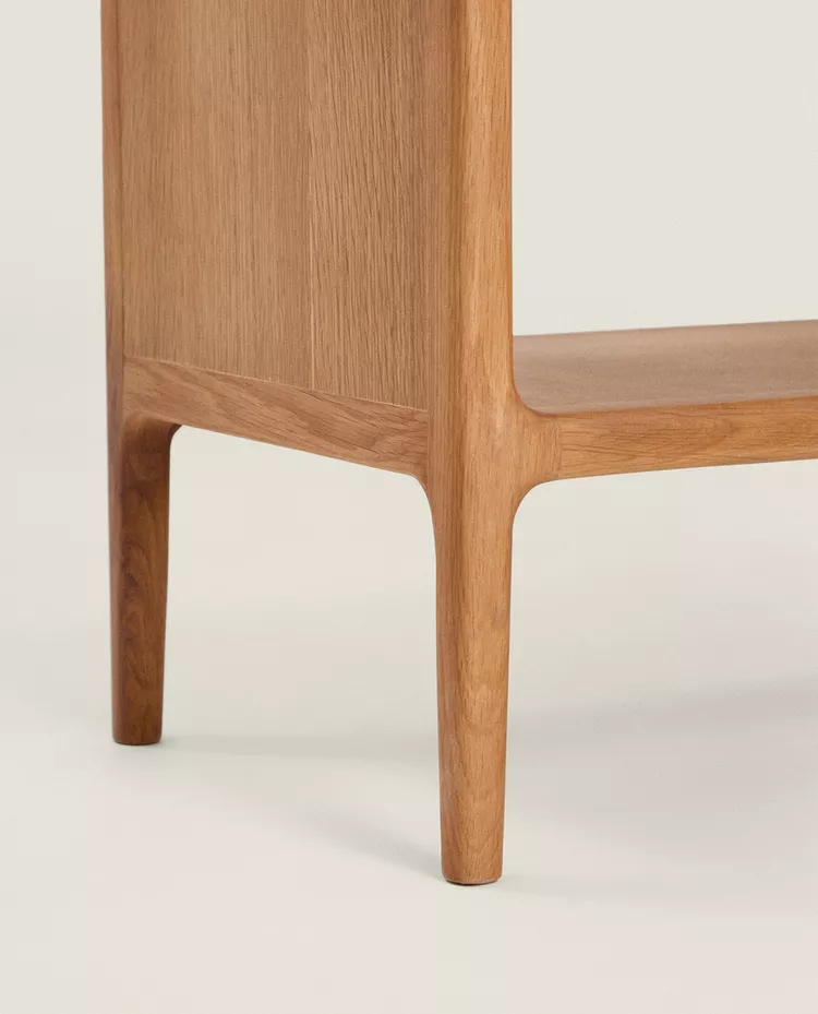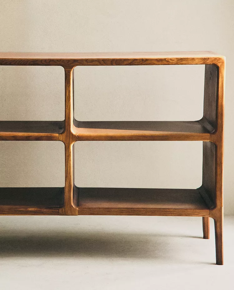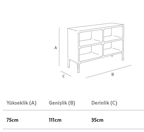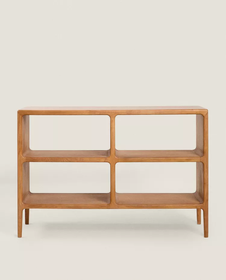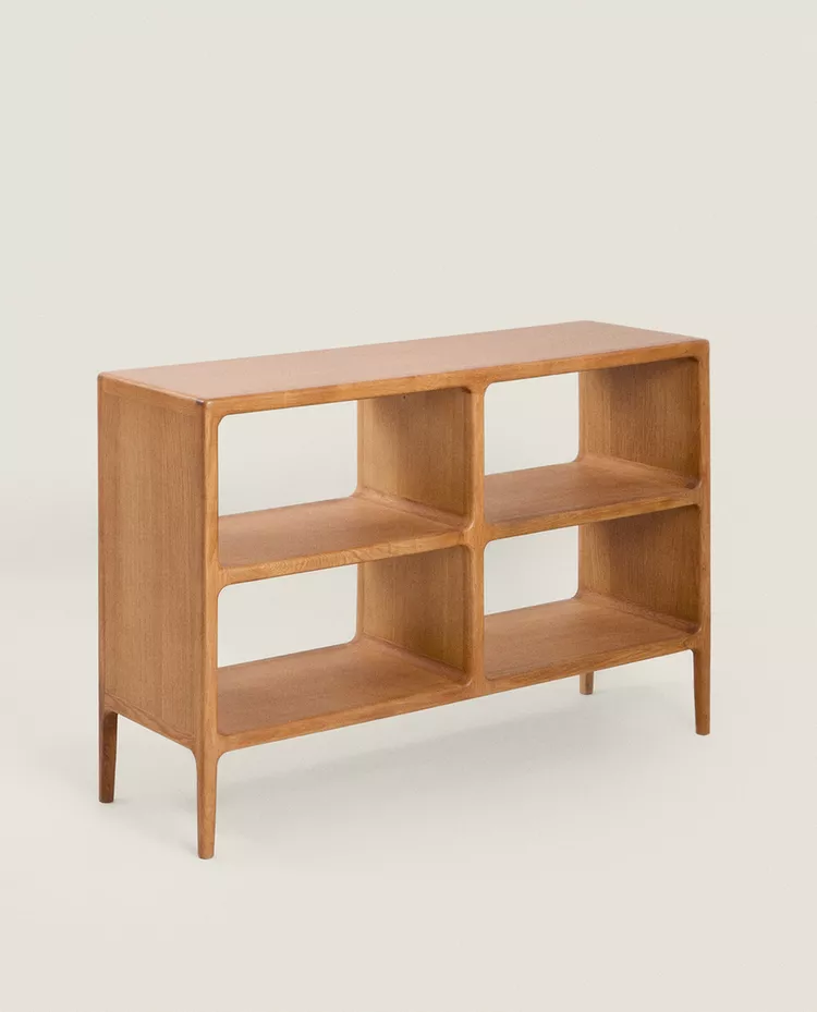 Eşyalarınız için dört alanı bulunan düzenleyici konsol, meşe ağacından yapılmış, bal rengi tamamlayıcı ve düzenleyici mobilya. Alçak kitaplık veya konsol gibi farklı şekillerde çok amaçlı kullanılabilir.