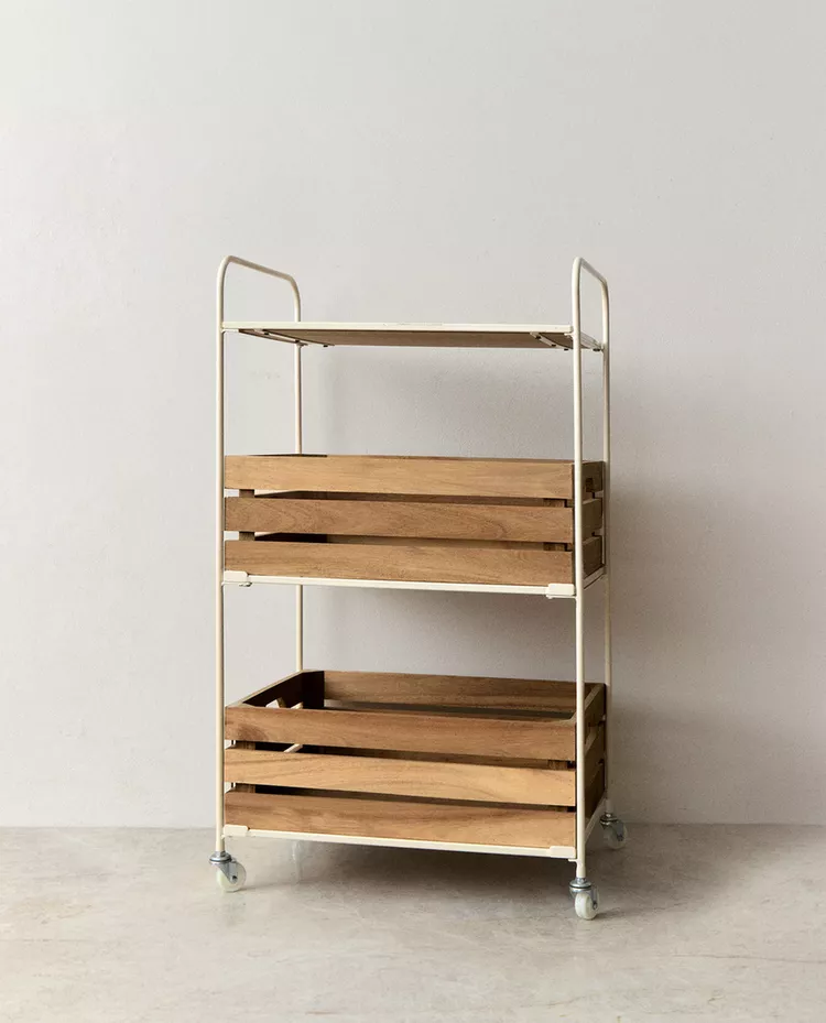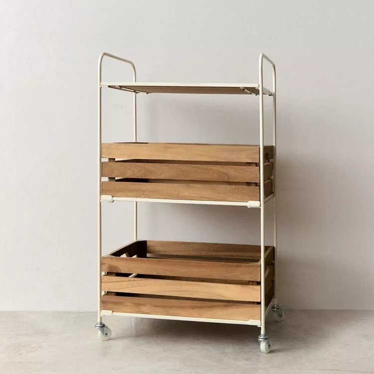 Tekerlekli Metal ve masif ağaç servis arabası